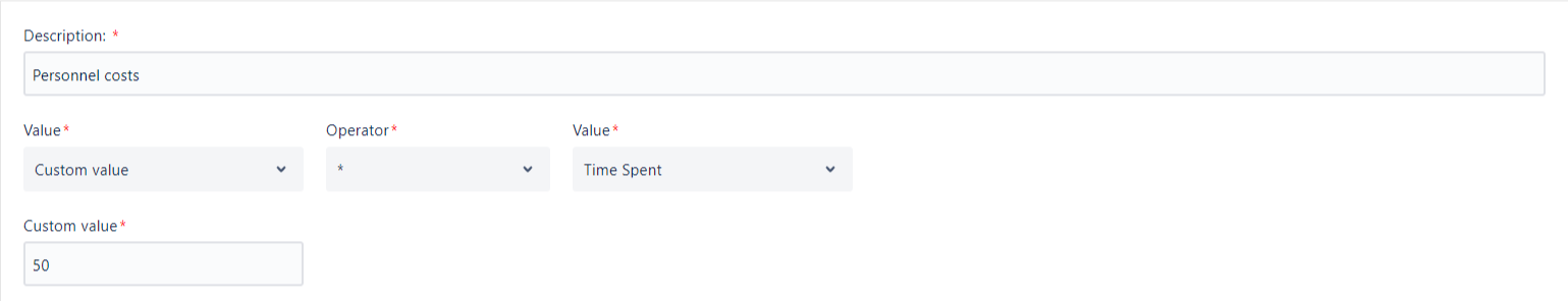 Custom value based calculations are useful for building progress bars which e.g. visualise the personnel cost progress. In this case, the custom value is equal to the personnel hourly rate.