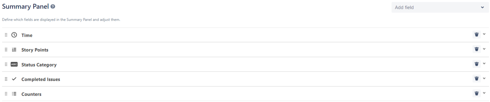 Admins can configure Epic Sum Up summary panels to show different metrics, depending on the company requirements and preferences. Once these are configured, these will be used as your standard configurations for Summary pPnels. You can also customise Summary Panel configuration on a local project basis, which you can learn more about here.