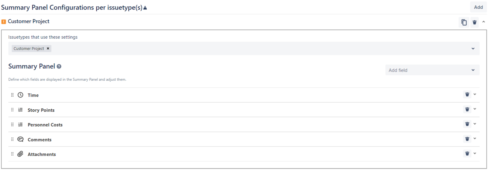 First, ensure all issue types you wish to configure are added to the “Issue types with Summary Panel”