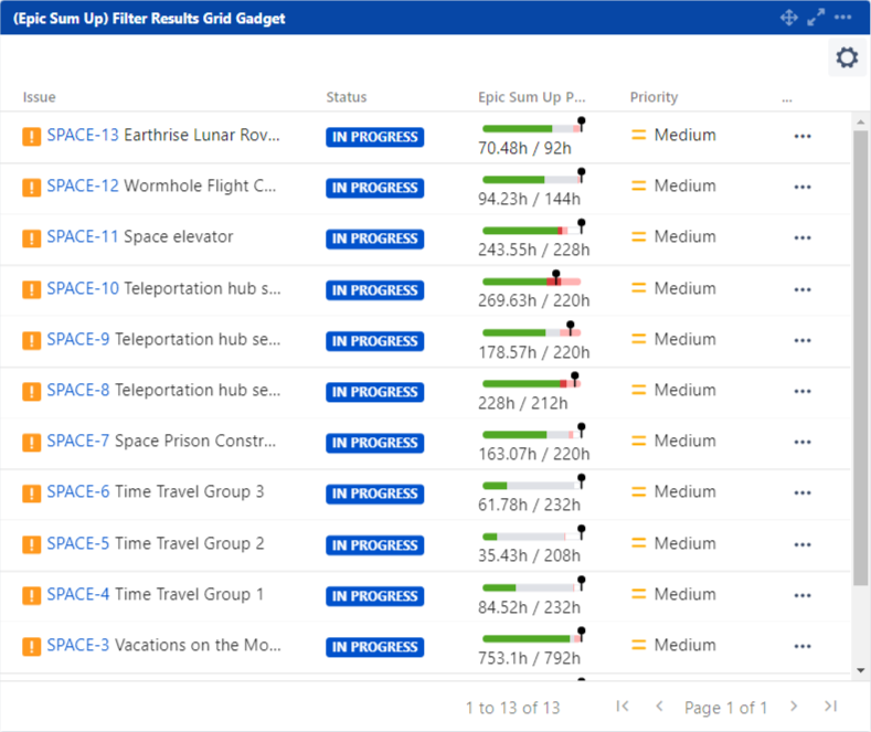 A custom-made gadget built by Epic Sum Up. The dashboard gadget view allows users to view every progress bar - predefined or generic - in one place.