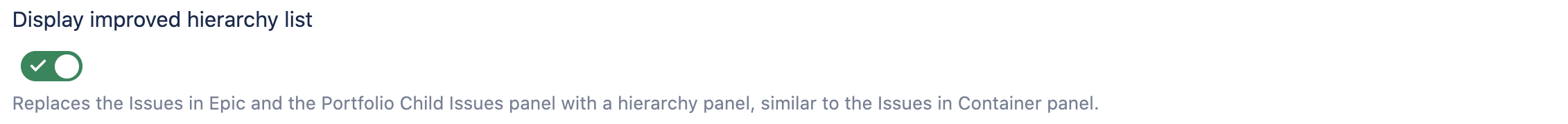 If this functionality is activated the Issues in epic / Portfolio issue panel will be replaced with a hierarchy panel. This hierarchy panel works like the issues in container list.