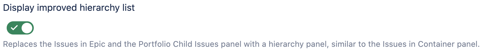 If this functionality is activated the issues in epic / Portfolio issue panel will be replaced with a hierarchy panel. This hierarchy panel works like the issues in container list.